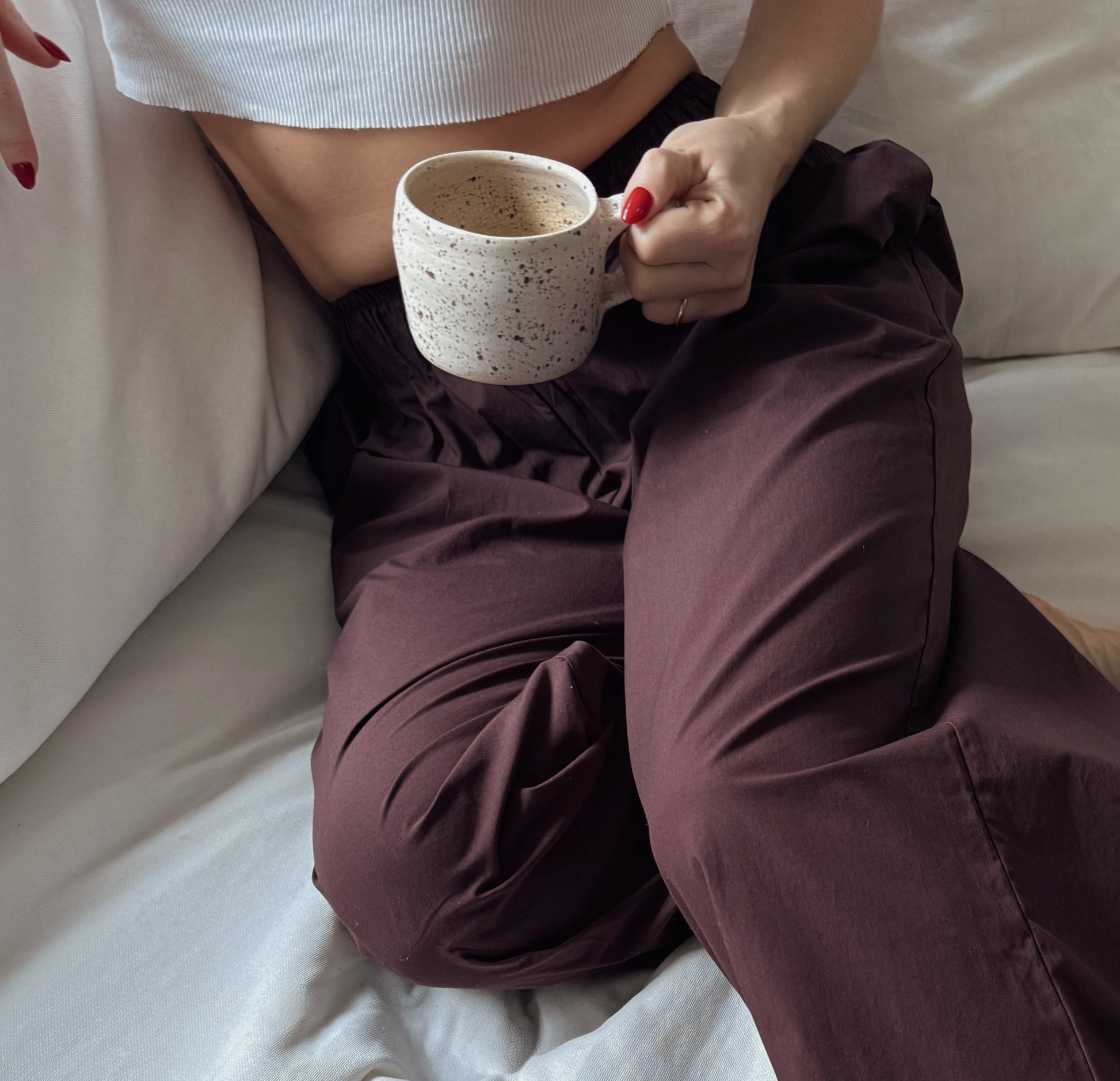 Wide leg, high-waisted pant. Made with crisp, airy cotton poplin, featuring a soft elastic waistband and hidden inseam pockets.